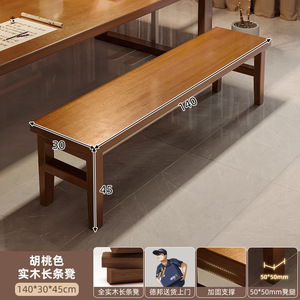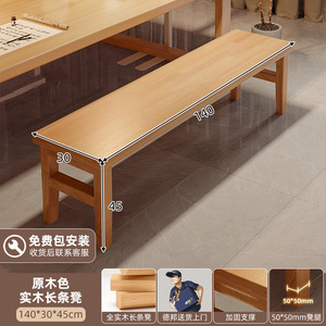 【长条凳*2条-实木框架】橡胶木色140*30*45cm