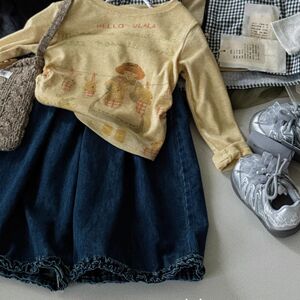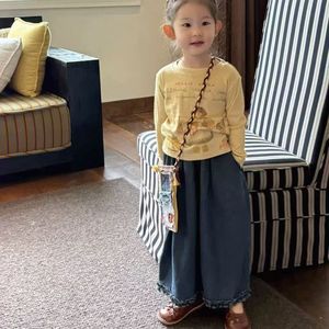 女童秋装两件套2025新款女宝宝长袖打底衫牛仔裤套装韩版阔腿裤子