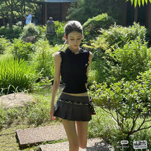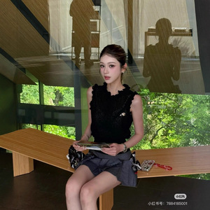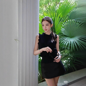 2025早秋新款南油cha时髦洋气小香风气质百搭圆领花边领无袖背心