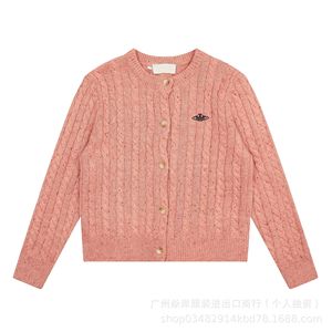 vivienne西太后土星美利奴羊毛针织开衫女秋复古绞花圆领毛衣外套