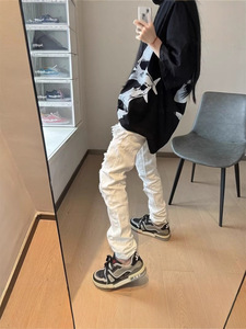 高街白钻潮牌轻奢破洞补丁烫钻水洗磨破刮烂男女牛仔裤修身小直筒