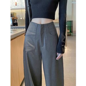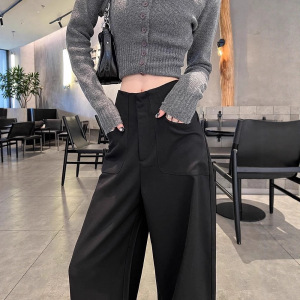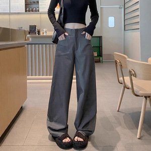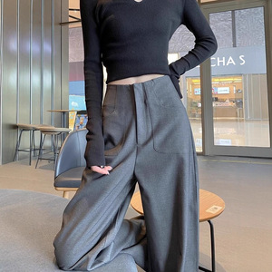 灰色高级感西装裤女秋冬高腰垂感阔腿裤休闲显瘦拖地裤窄版直筒裤
