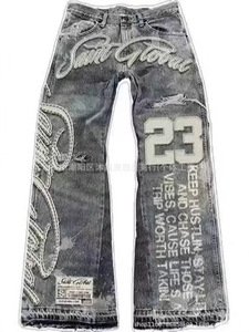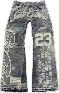 时尚潮流夏季新款美式水洗牛仔长裤时尚百搭高街宽松休闲百搭长裤