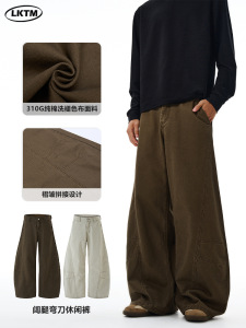 LKTM男装 美式复古vintage设计感弯刀休闲裤男女宽松廓形垂感长裤