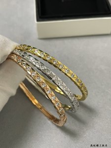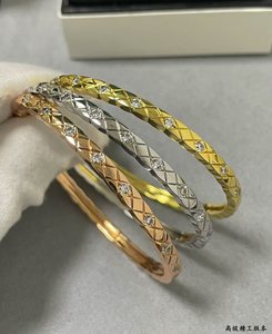 高级感小香风菱格纹手镯女925纯银镀18k玫瑰金带绝美轻奢小众镶钻