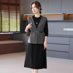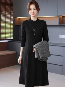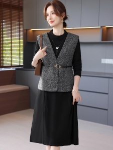 时尚妈妈装打底裙秋季新款马甲两件套大码中老年女装连衣裙套装