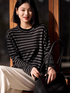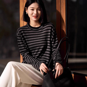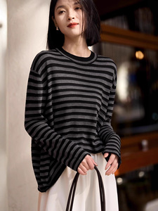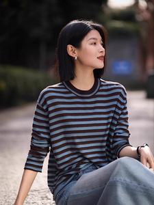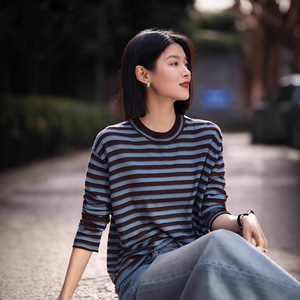 厂家代发早秋新款条纹针织衫女士苏醒轻盈感休闲时尚长袖上衣批发