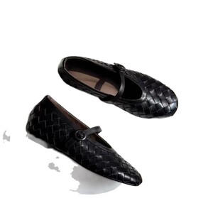 2025新款手工编织气质圆头玛丽珍鞋女鞋韩版风编织镂空不累脚单鞋