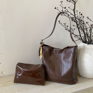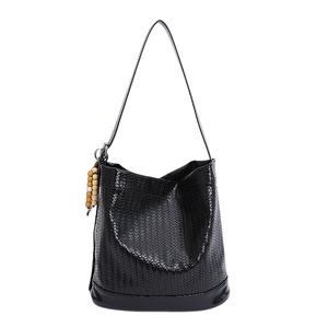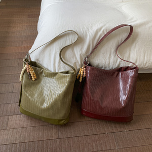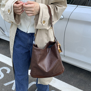 跨境高级感编织纹水桶包包女2025秋季新款时尚纯色百搭单肩斜挎包