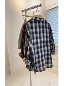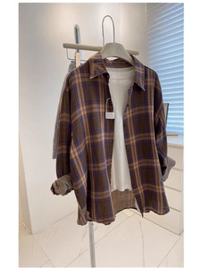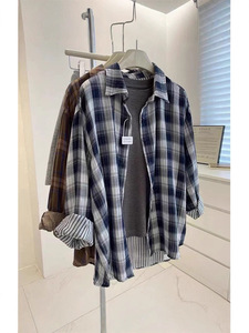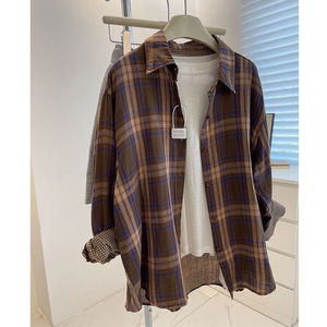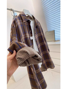 双面棉纱休闲复古格子长袖时髦衬衫慵懒早秋宽松百搭衬衣开衫外套