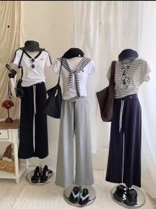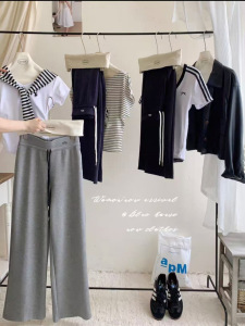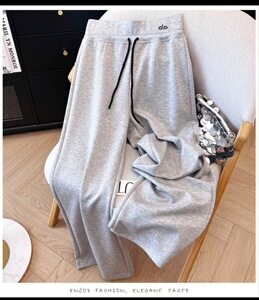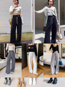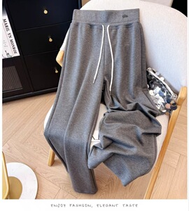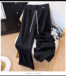 美式抽绳运动裤女春秋新款高腰垂感显瘦阔腿裤直筒宽松拖地裤卫裤