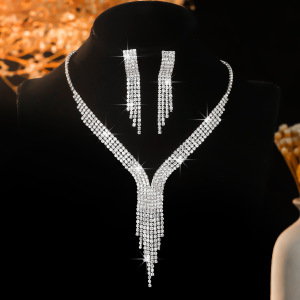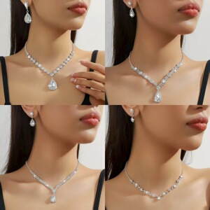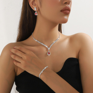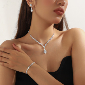 跨境饰品爆款首饰套装满钻爪链简约时尚高级感配饰耳环耳钉项链女