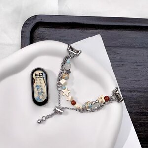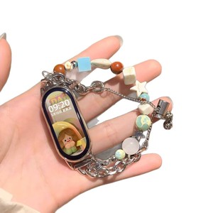 适用小米手环9表带8nfc串珠金属手链8代ins风小众运动腕带