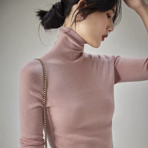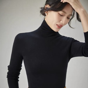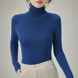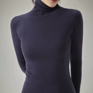 48支扬子纱岛津无缝100羊毛半高领精纺羊毛衫女纯色薄款针织打底