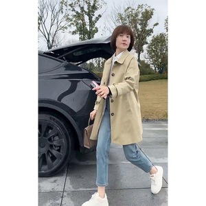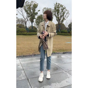 今年2025休闲外套女英伦漂亮流行慵懒风春秋中长款风衣卡其色新款