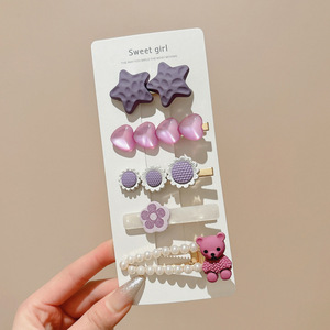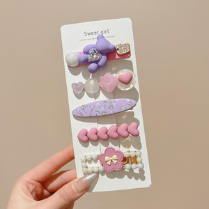 9#紫色蝴蝶结儿童发夹(14件套) -软胶