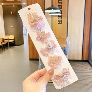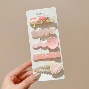 10#粉色小花发夹五件套