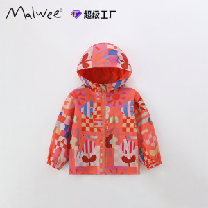 跨境malwee女童风衣外套秋冬新款连帽长袖开衫欧美中小童洋气开衫