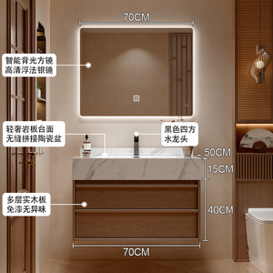 70CM岩板无缝陶瓷盆+智能收纳镜柜