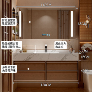 120CM岩板无缝陶瓷盆+智能收纳镜柜