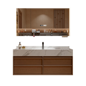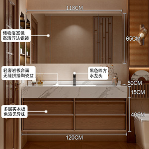 中古风实木卫浴柜岩板无缝陶瓷盆洗漱台洗手脸台盆防潮浴室柜组合