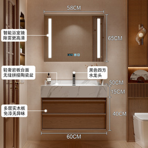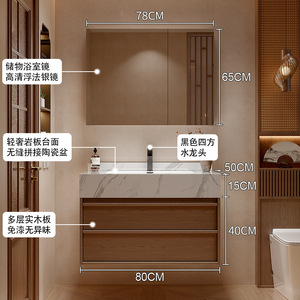80CM岩板无缝陶瓷盆+智能收纳镜柜