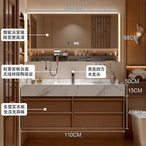 110CM岩板无缝陶瓷盆+智能收纳镜柜