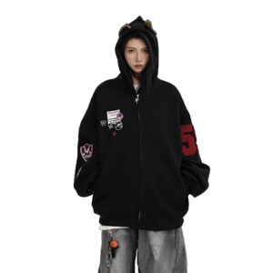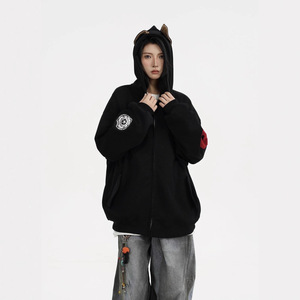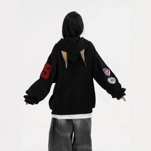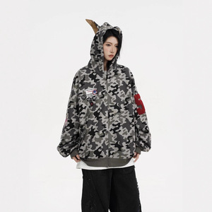 2025美式重磅勋章刺绣迷彩开衫连帽卫衣男女情侣高街新款外套男