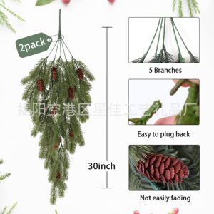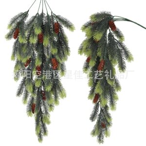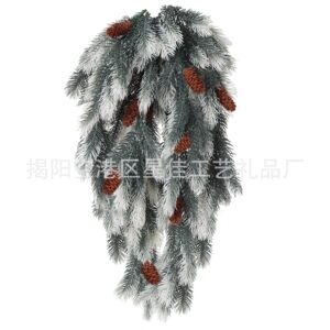 跨境新品仿真圣诞松针松果藤条壁挂家居庭院装饰仿真绿植假花藤蔓