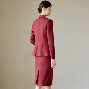 酒红色西装外套女春秋2025新款时尚气质高端西服连衣裙套装两件套