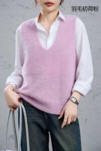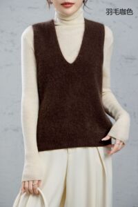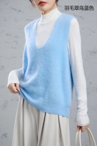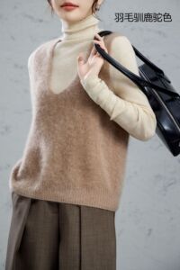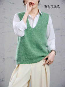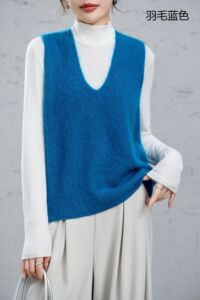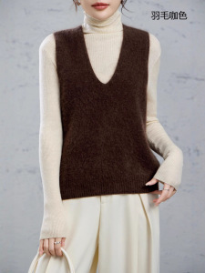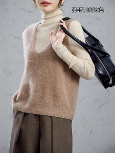 95羊毛5羊绒拉毛无袖羊绒衫拉绒长毛上衣打底背心马甲女外搭坎