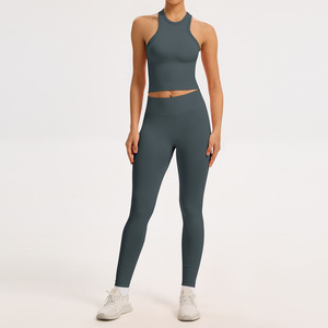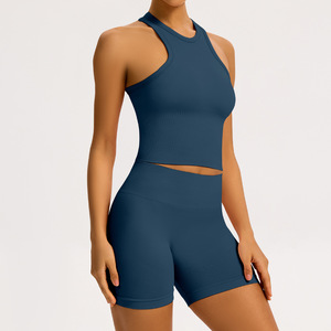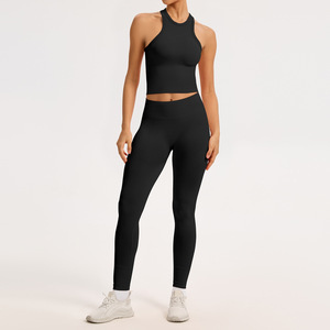跨境无缝瑜伽套装女螺纹收腰提臀运动套装工字美背健身瑜伽服