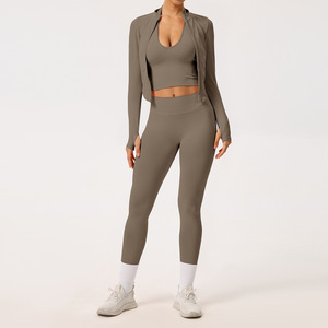 卡其色(文胸+拉链外套+长裤)