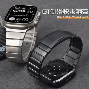 适用苹果表带Apple Watch不锈钢表带watch10弧形快拆金属表带49mm