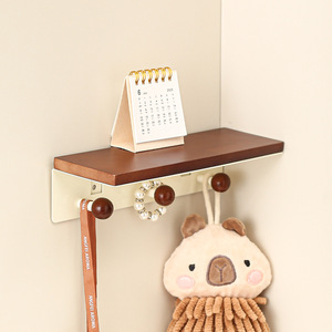 实木挂钩置物架免打孔墙上钥匙挂钩置物架玄关客厅创意衣帽收纳架