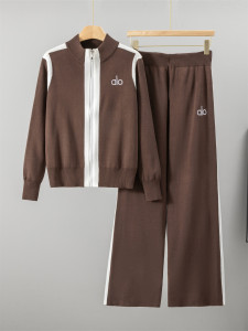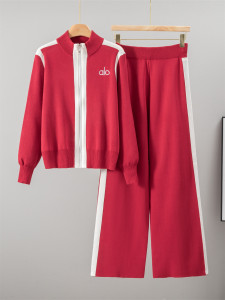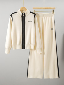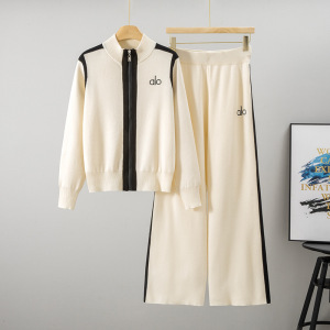 跨境2025秋冬新款时尚立领拉链休闲针织套装女百搭外套弹性直筒裤
