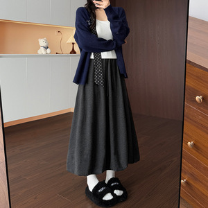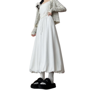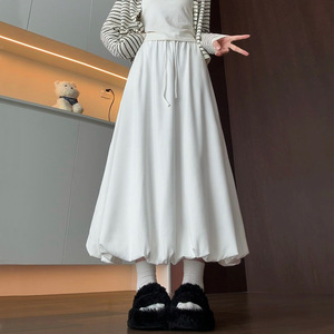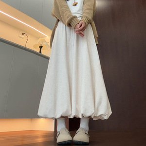 韩系花苞针织糯米半身裙 女秋季新款高腰显瘦灯笼裙中长款a字伞裙