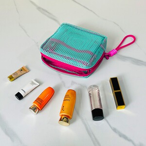 跨境新款多巴胺口红豆腐包大容量化妆包便携化妆品网格杂物收纳包
