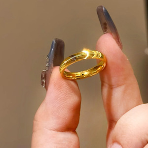 INS爆闪轻奢CNC猫眼戒指女钛钢不掉色网红水波纹素圈指环爆款饰品
