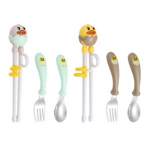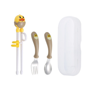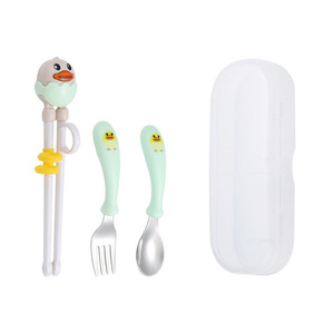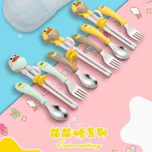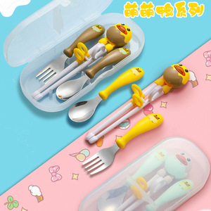 304不锈钢儿童叉勺练习筷套装卡通高颜值母婴喂养礼品便携盒餐具