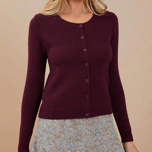 跨境春秋款时尚基础百搭圆领单排扣修身打底长袖针织开衫