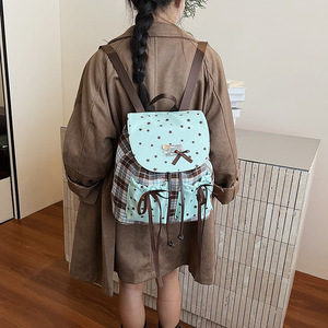 韩系薄荷绿色星星学院风双肩包新款小众少女蕾丝蝴蝶结洋气小背包