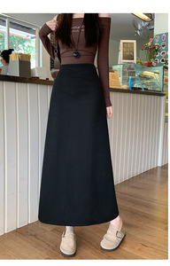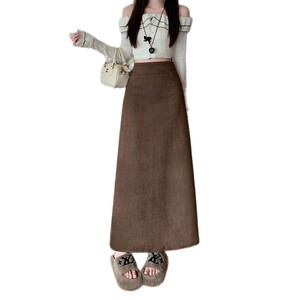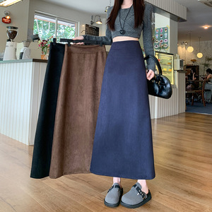 现货实拍2025秋新款半身裙中长款休闲高腰包臀裙鹿皮绒半身裙