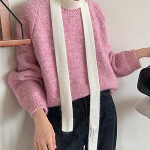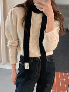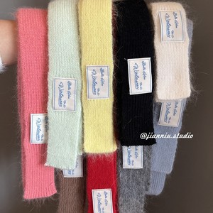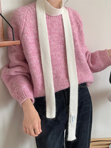 韩国ins糖果色细长毛线造型小围巾女装饰搭配针织贴布辣妹小领巾
