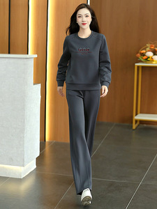 品牌妈妈长袖运动套装女2025秋季新款时尚洋气圆领休闲卫衣两件套