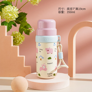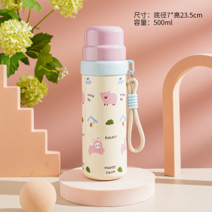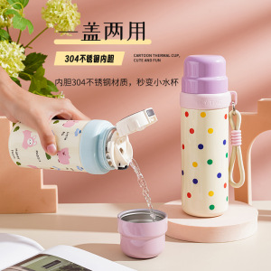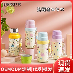 新款高颜值316不锈钢女生水杯双饮吸管带提绳外出便携保温杯