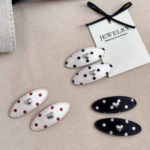 韩版网红黑白红波点爱心发夹精致百搭氛围感夏季新款侧边夹发饰女