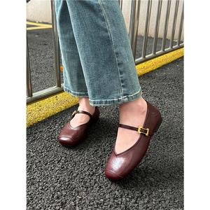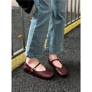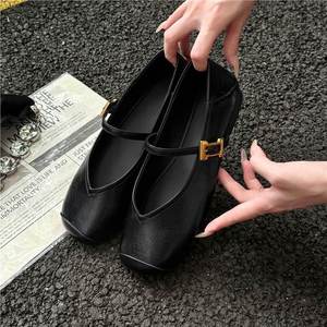 方头浅口软皮平底玛丽珍鞋女2025夏新款时尚百搭舒适通勤单鞋