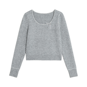 CHACHASTU 早秋慵懒风穿搭针织衫女2025新款春季灰色上衣毛衣外套