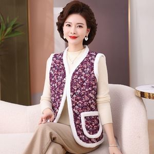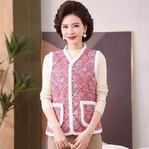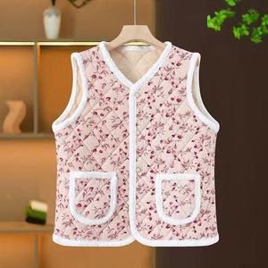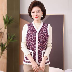 中年妈妈装马甲中老年秋季印花坎肩加绒保暖开衫内外穿气质名媛